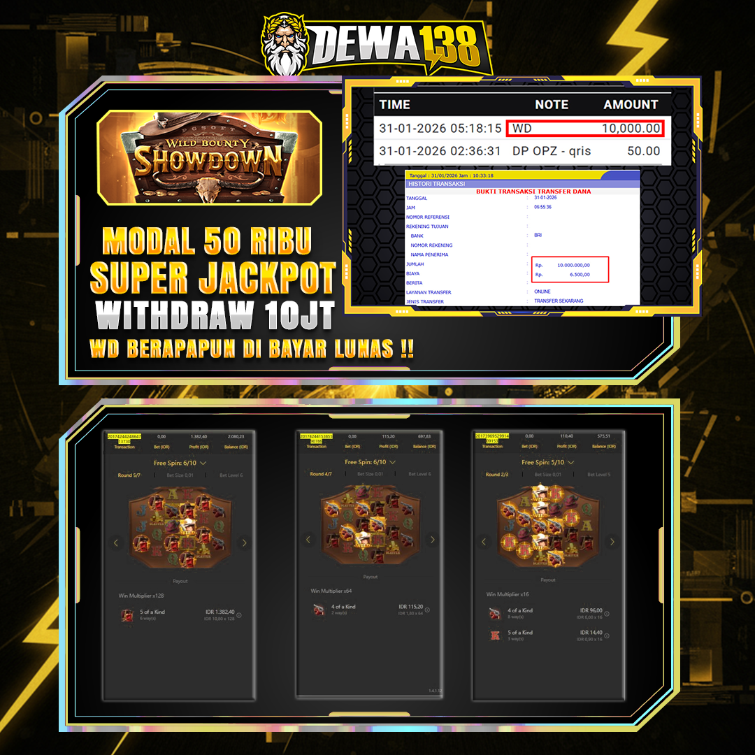 DEWA138 menghadirkan game jackpot vip yang di lengkapi fitur khusus new member hanya dengan modal deposit 50k dijamin akan withdraw 10 juta malam ini.